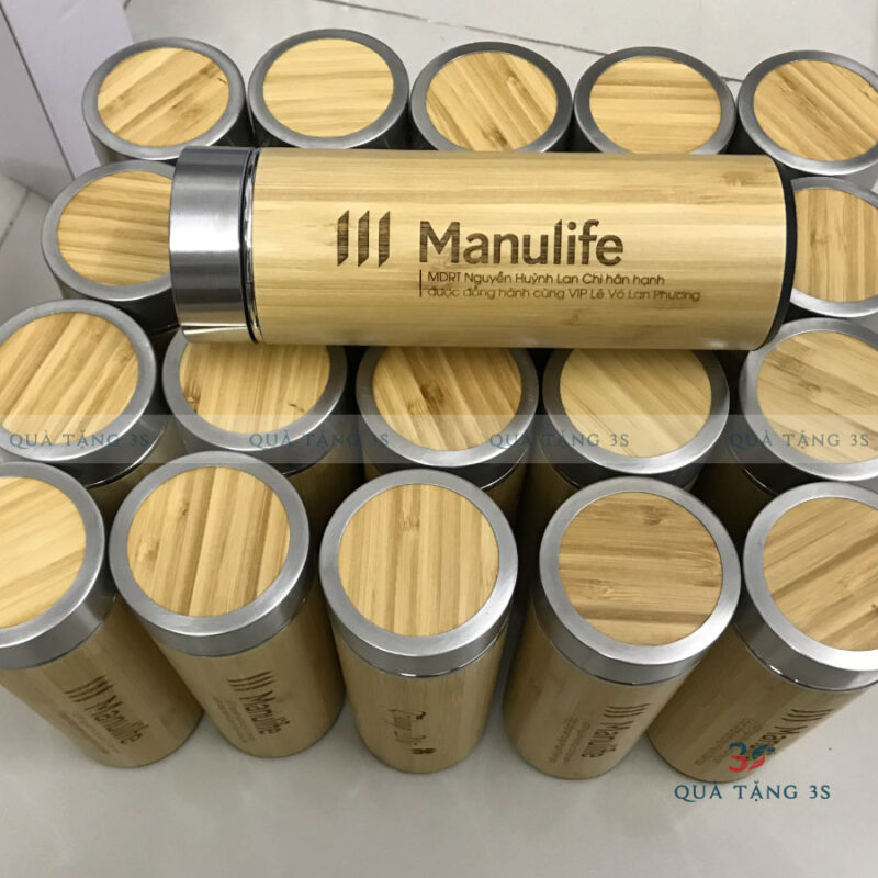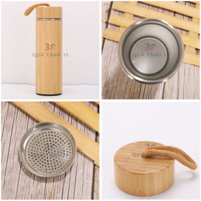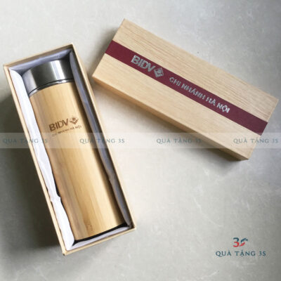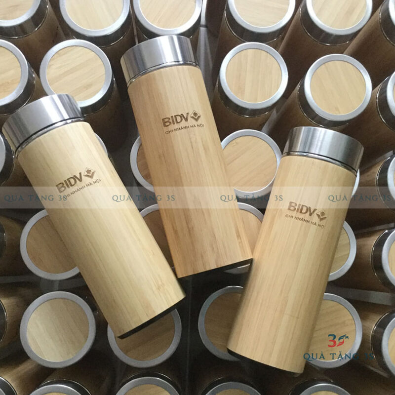 Bình Giữ Nhiệt Vỏ Tre In Logo Theo Yêu Cầu