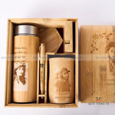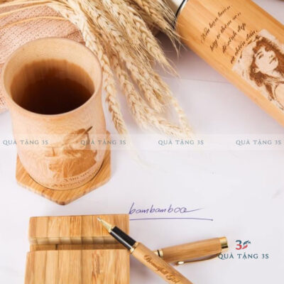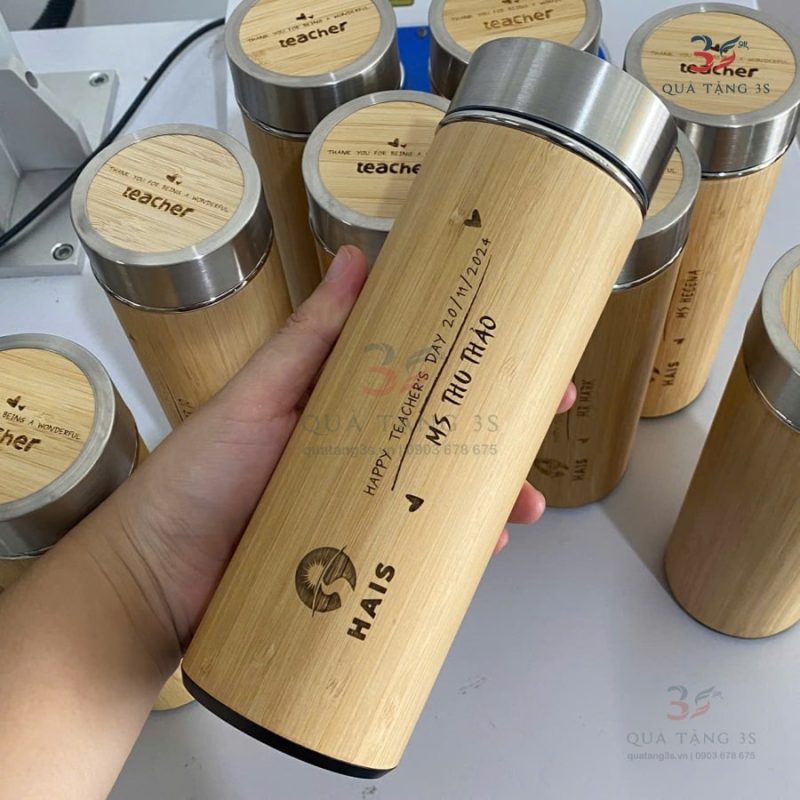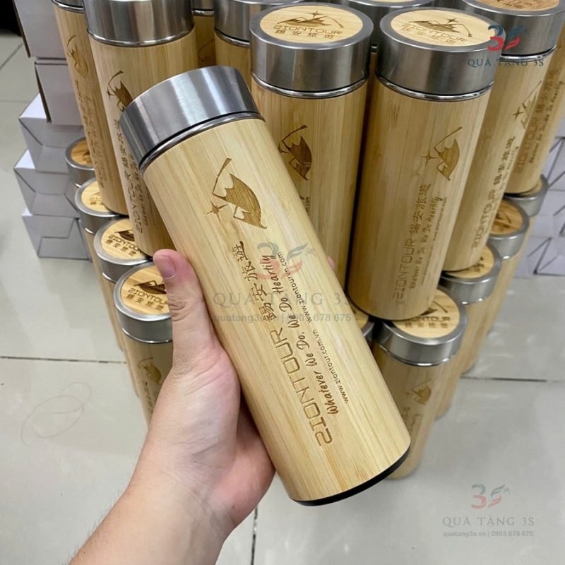 Quà Tặng 3S chuyên cung cấp bình giữ nhiệt vỏ tre in logo theo yêu cầu.