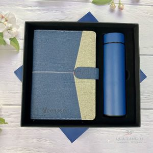Bộ Gift Quà Tặng Sổ Da – Bình Giữ Nhiệt In Logo – BQT3S036