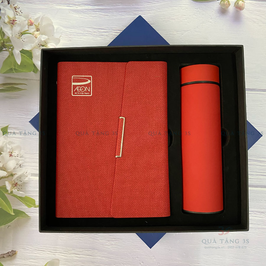 Bộ Quà Tặng Sổ Da Bình Giữ Nhiệt In Logo – BQT3S034