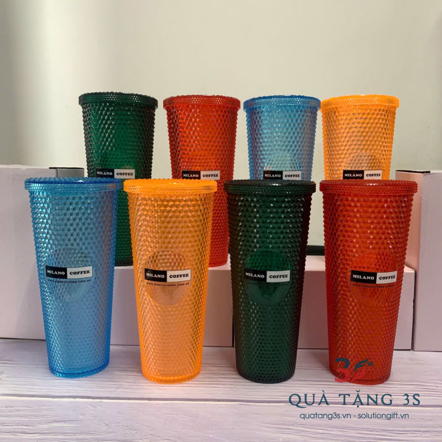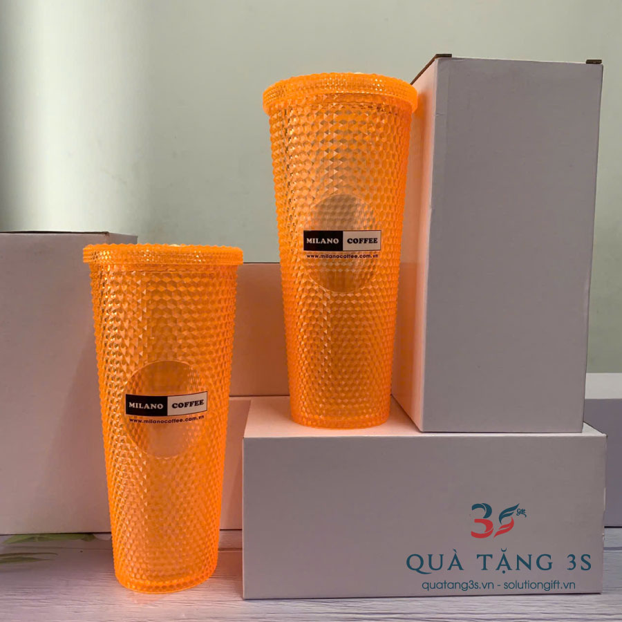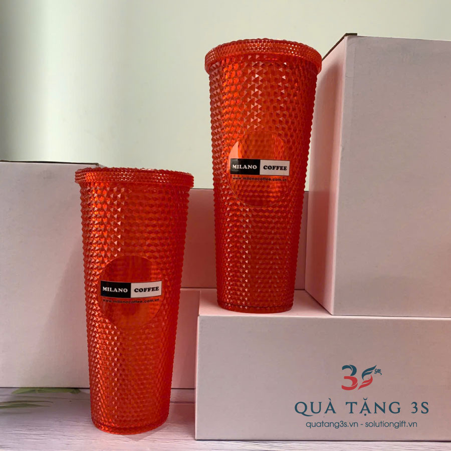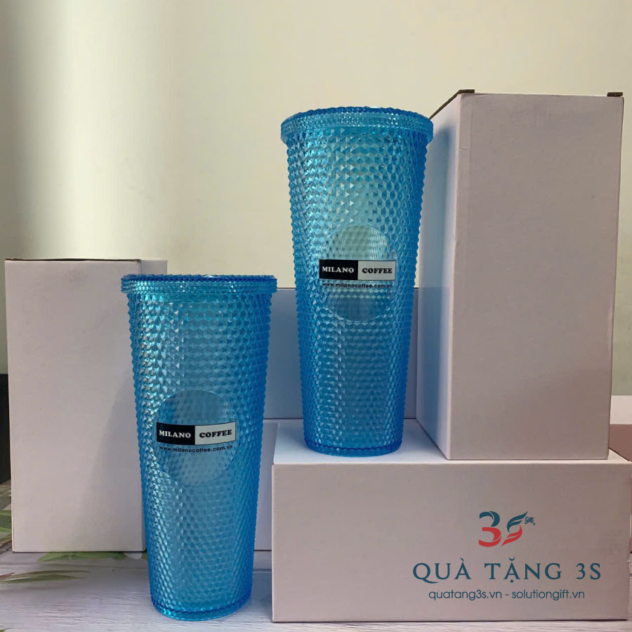 Ly Nhựa Cách Nhiệt Vân Kim Cương In Logo